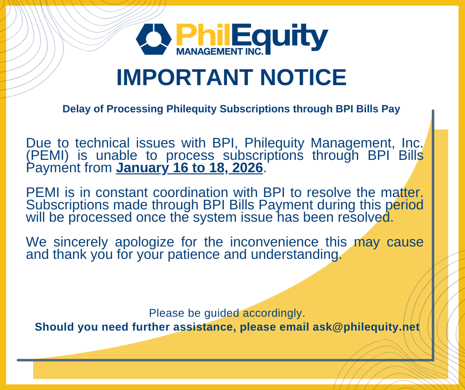 Important Notice: Delay of Processing Philequity Subscriptions through BPI Bills Pay from January 16 to 18, 2026